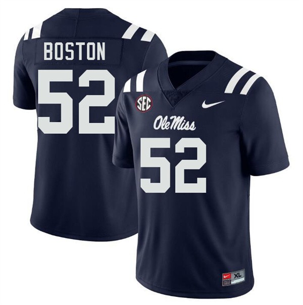 • Men Kenneth Boston Navy Ole Mississippi Rebels #52 Stitched Jersey