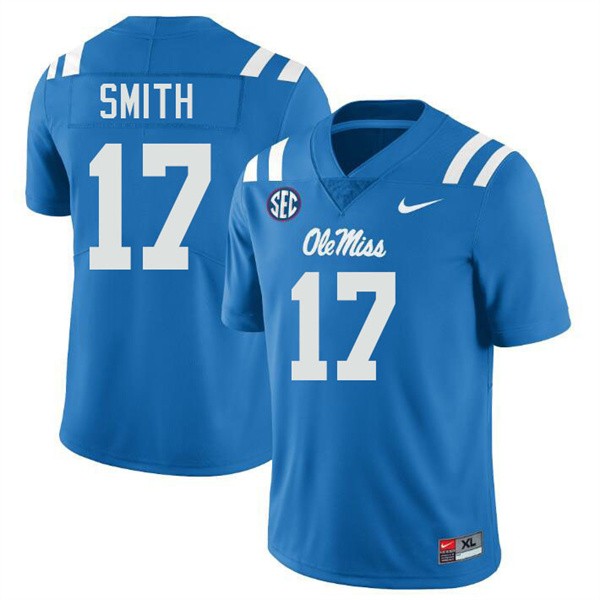 Get your hands on the official Men Maealiuaki Smith Powder Blue Ole Miss #17 2025 Jersey 701126-801 before they're gone! Show your support for your favorite player with our limited edition collection. Don't miss out, shop now.