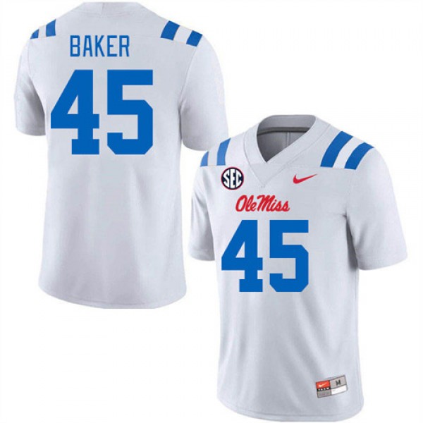 • Men Mike Baker White Ole Mississippi Rebels #45 University Jerseys