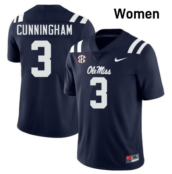 • Women Caleb Cunningham Navy University of Mississippi #3 Game Jerseys