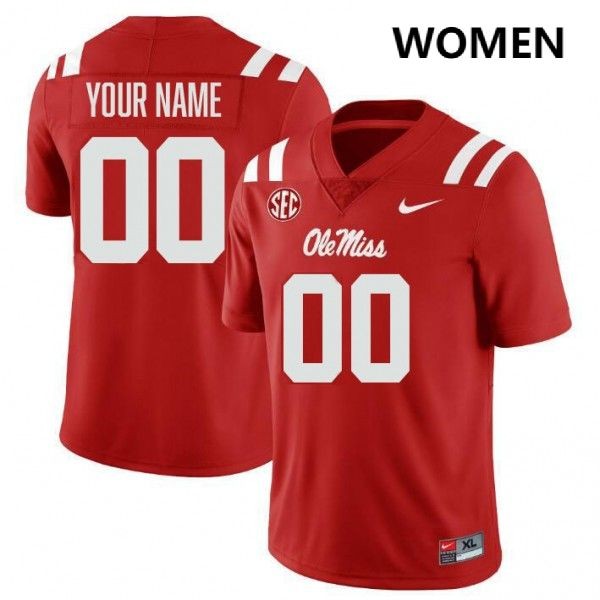 • Women Custom Red Ole Mississippi #00 Player Jersey