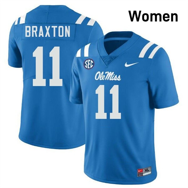 Women Jaylon Braxton Powder Blue Mississippi #11 Player Jerseys 110277-852