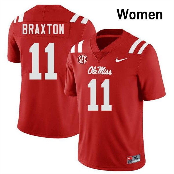 • Women Jaylon Braxton Red Mississippi #11 Embroidery Jerseys