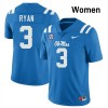 Women Sage Ryan Powder Blue Ole Miss Rebels #3 Stitched Jersey 466165-120