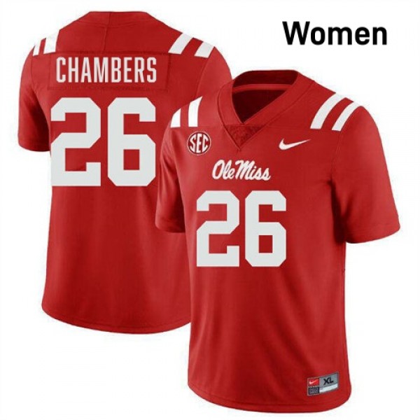 • Women Tahj Chambers Red Ole Mississippi #15 Stitched Jerseys
