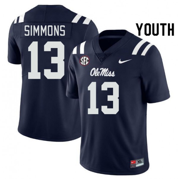 Youth Austin Simmons Navy Ole Mississippi #13 2025 Jersey 815288-651