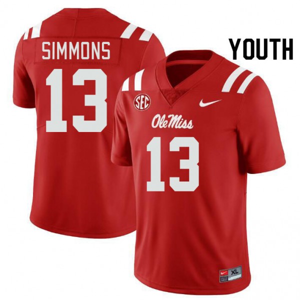 • Youth Austin Simmons Red Ole Miss Rebels #13 University Jerseys