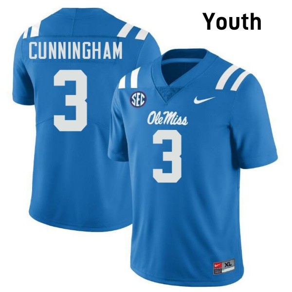 Youth Caleb Cunningham Powder Blue Rebels #3 High School Jersey 511744-824