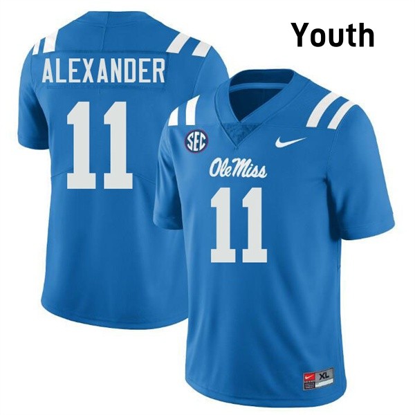 Youth Deuce Alexander Powder Blue Ole Mississippi Rebels #11 2025-26 Jerseys 549373-521