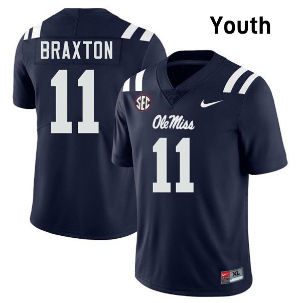 • Youth Jaylon Braxton Navy Ole Miss #11 2025 Jerseys