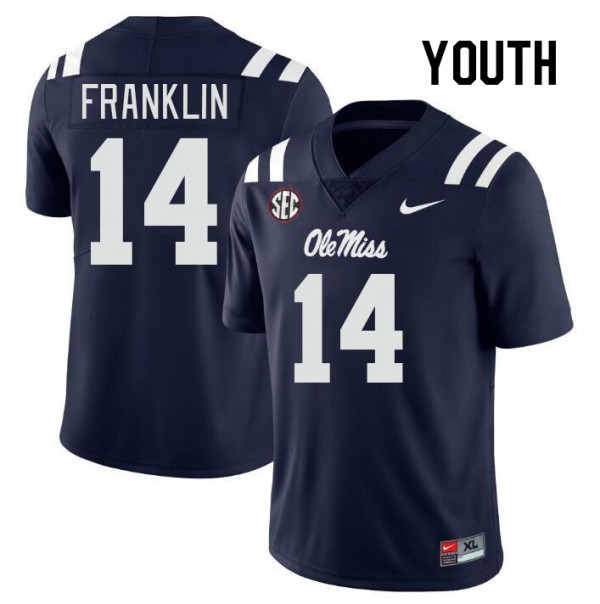 • Youth Kam Franklin Navy Ole Mississippi Rebels #14 High School Jersey