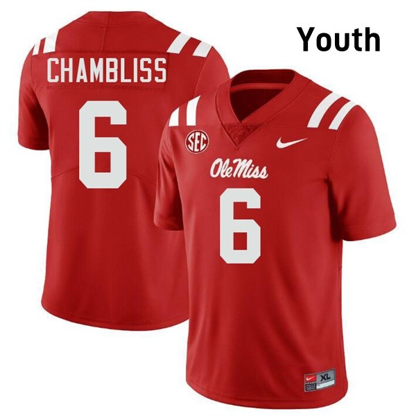 Youth Trinidad Chambliss Red Ole Miss #6 Replica Jerseys 131875-774